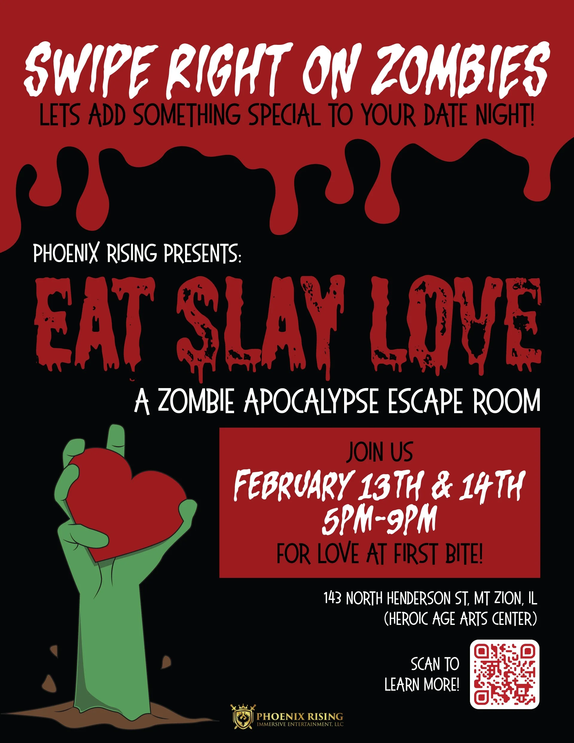 Join us February 13th & 14th from 5pm-9pm for our zombie apocalypse escape room!